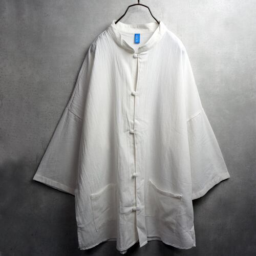 バンドカラーコットンシャツ ナチュラル 七分袖 ホワイト