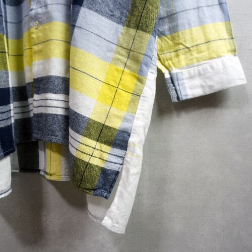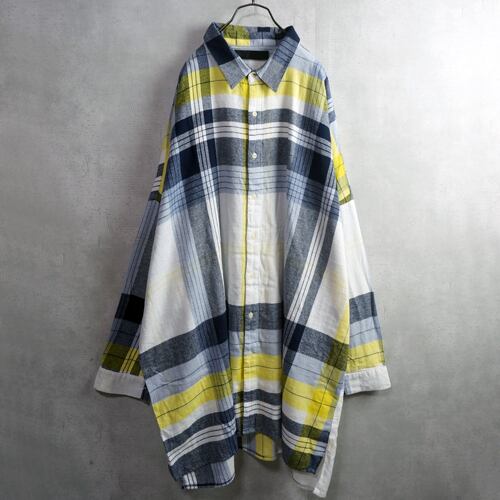 ビッグシャツ ロングシャツ 白×黄×紺 綿100%