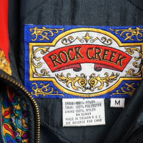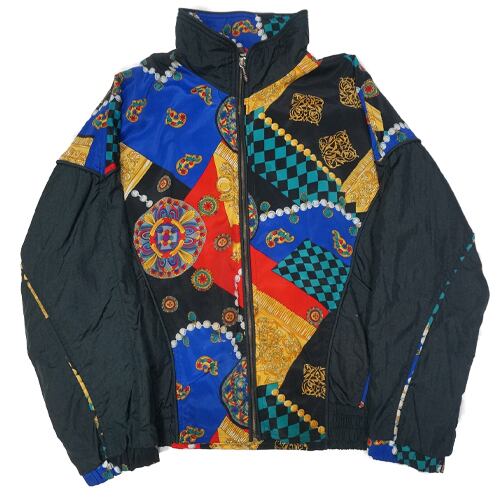 古着 総柄ブルゾン ナイロン ハイネック ブラック M