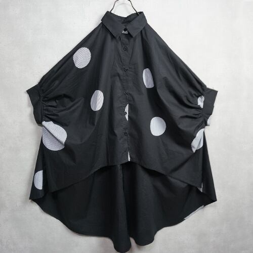 立体 変形 ドット ビッグシャツ 半袖 ブラック