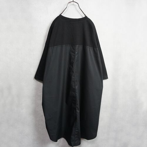 ロングTシャツ 布帛×カットソー ブラック 半袖 XL