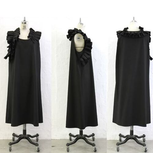 mode アシメ フリル ノースリーブ ワンピース ブラック