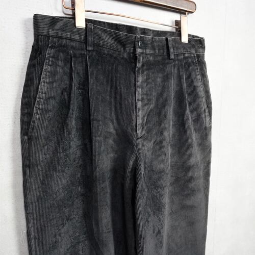 古着 ベロア コーデュロイ 2タック ワイドパンツ L 黒