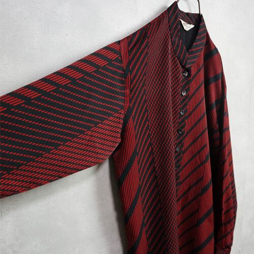 古着 バンドカラー 総柄 シャツ デザインボーダー