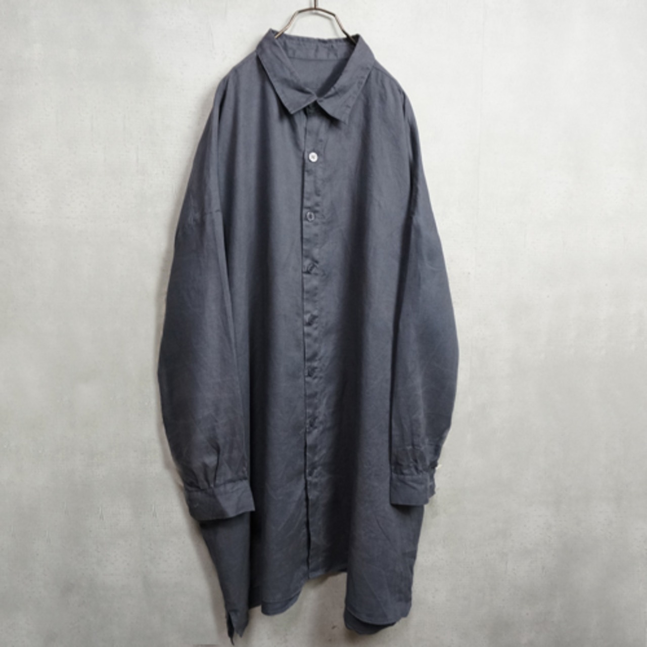 古着 超ビッグサイズ リネンシャツ 羽織 黒灰