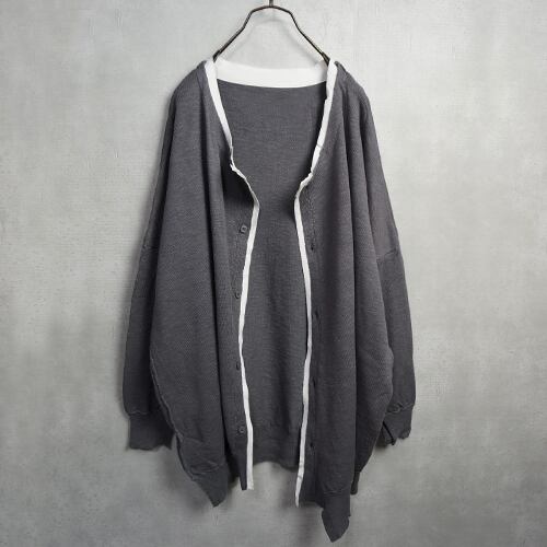 アシンメントリー ニットカーディガン グレー
