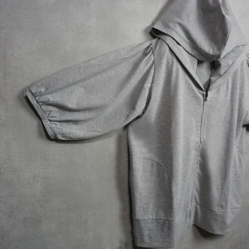 パフスリーブ ジップアップパーカー 5分袖 カットソー グレー