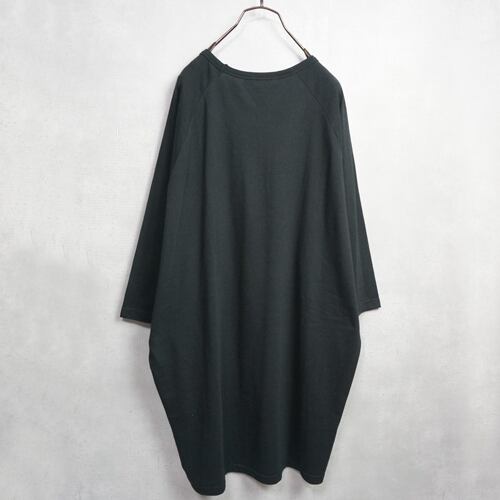 ラグランTシャツ ワイド ロング丈 6分袖 ブラック コットン レーヨン L