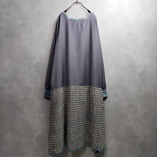 切り替えワンピース ツイード 襟裾デザイン